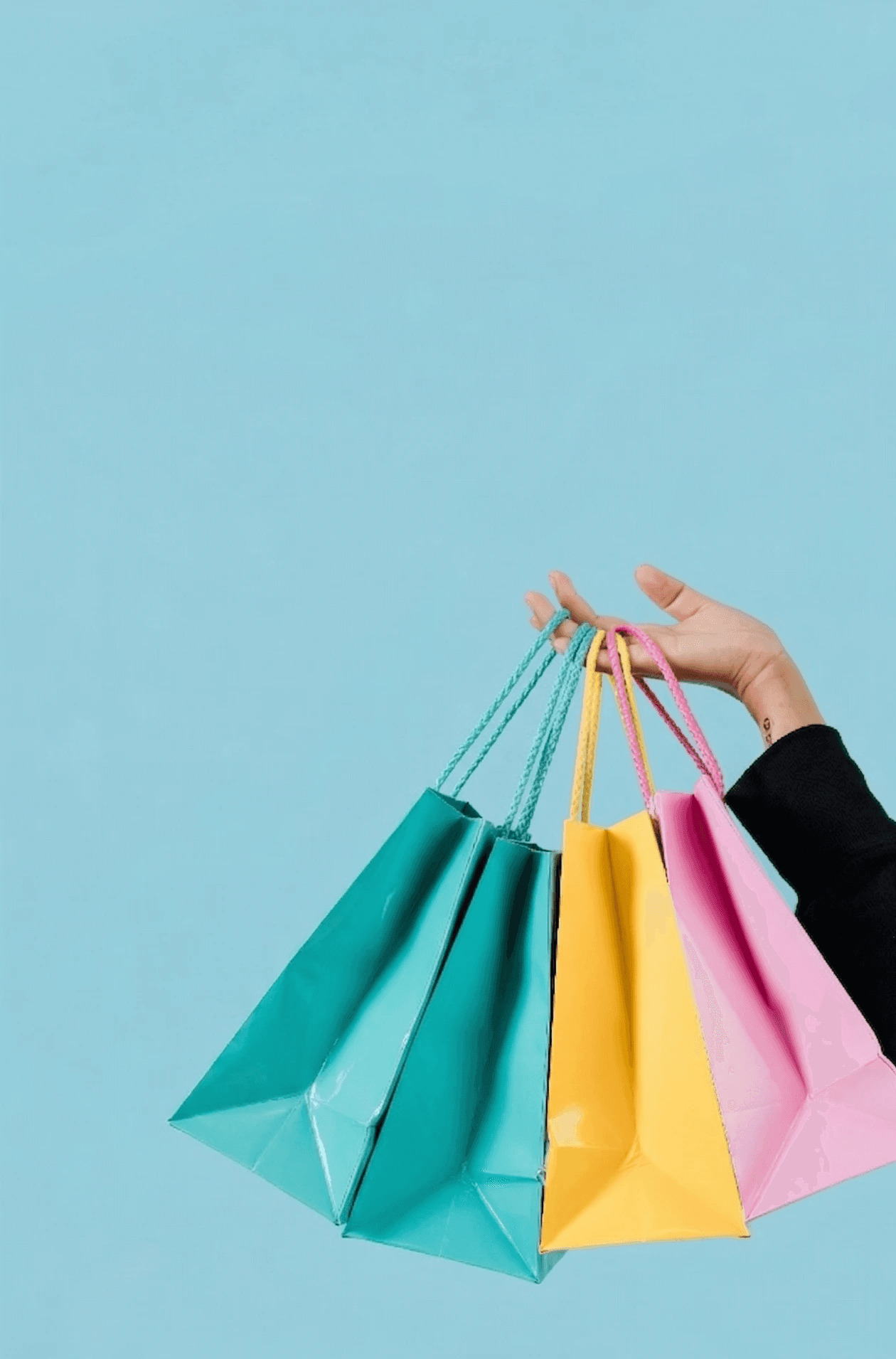 Colorful shopping bags for retail sales. Photo via Pexels.