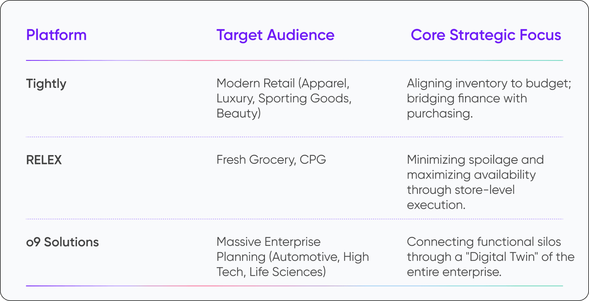 Every enterprise planning platform is architected for a specific "ideal user." This "Industry DNA" dictates the underlying logic of the software. A tool built for groceries must prioritize "spoilage logic" and shelf-life constraints, whereas a tool for luxury apparel must master "size-curve logic" and "initial allocation" for product launches that lack historical sales data.